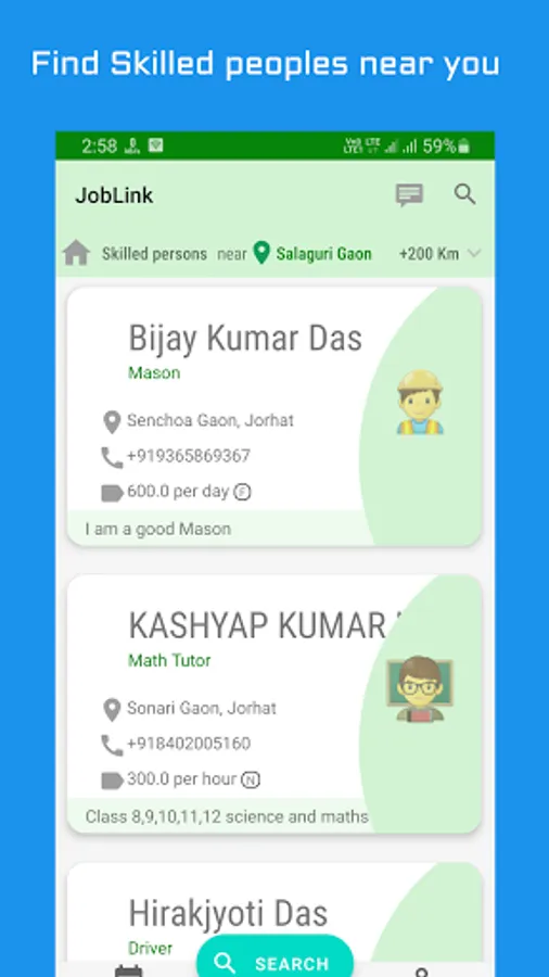 From simple Job to high profile Job, every Job has its own value and own customers, whether it is a Job of home cake maker, Home Tutor, Plumber, Electrician,, Photographer, Teacher, Doctor etc . People near to you often need service of such skilled personals, and JobLink connects them with the customers at free of cost. So don't be late and make a DIGITAL SKILL CARD suits your skill and show your SKILL to the world.