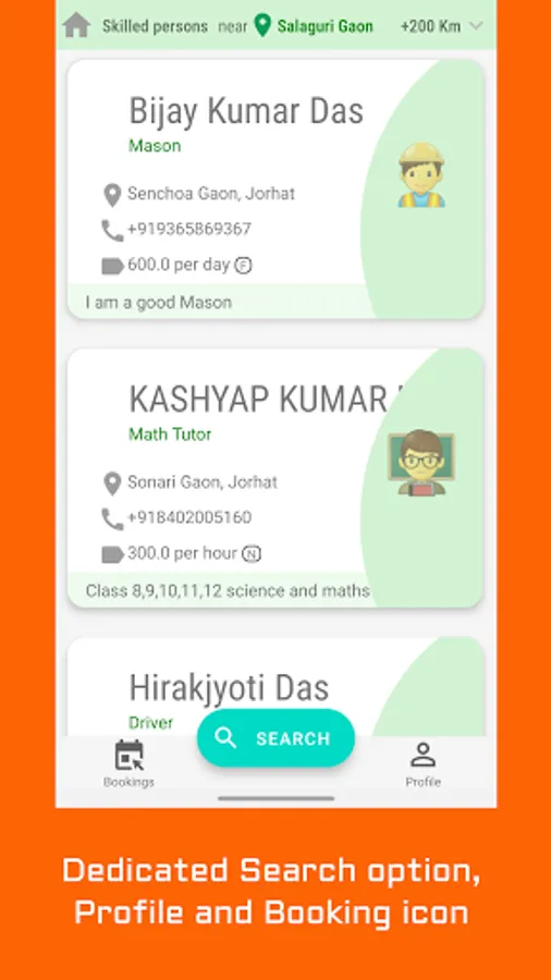 It has a user friendly clear UI by which users can easily search a locale SKILLED PERSON near to him as per his/her requirements.