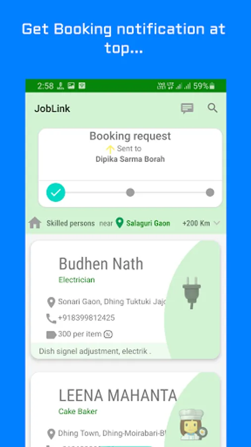 JobLink is an android app by which Skilled people can get locale Job or Booking for his/her product or service. People near to him can Book or Contact him/her via this app and take his/her service or product.