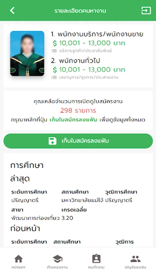 2. Able to search and store job applications (resumes) for consideration later.