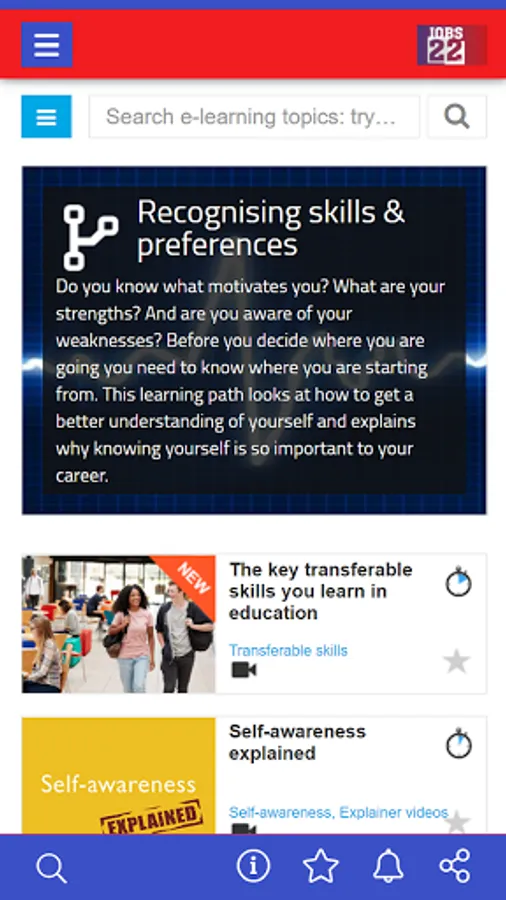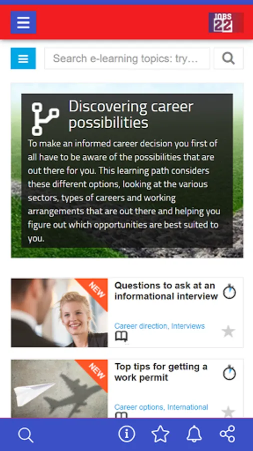 Get 1-click access to all your Jobs22 tools and e-learning resources. Take career assessments, prepare for interview, get expert video advice, or run a job search on the go.