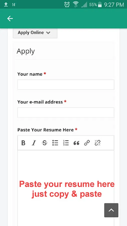 • Click on send you resume then you will find your email provider opened with the recipient address at the "To" filed and rite the job code in the "subject filed.
