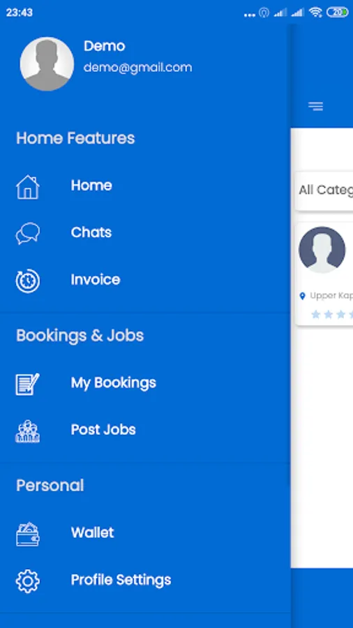 Customer App – Here customer can get registered and start using the application to view and hire various services near his location and through different categories