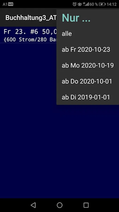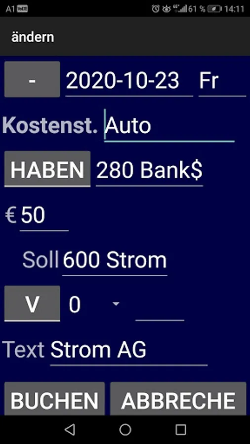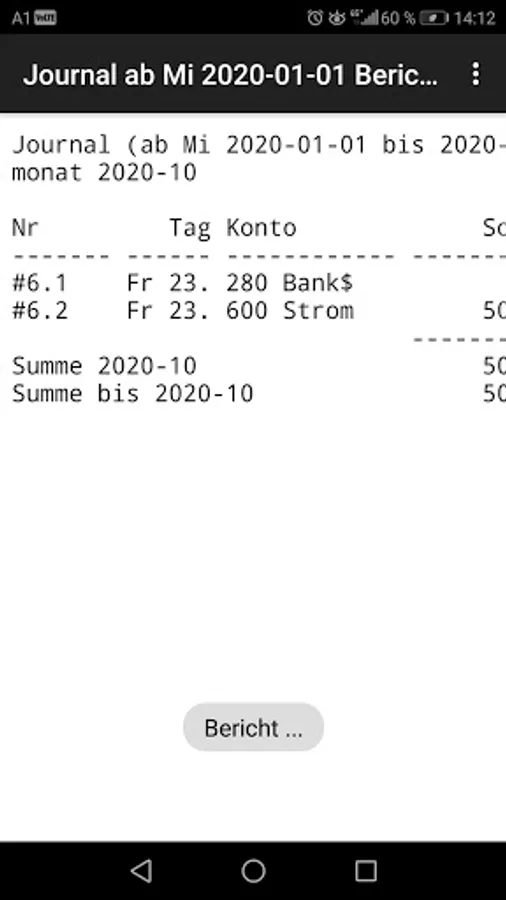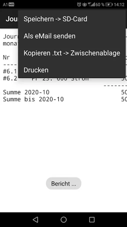 With mobile accounting, you can record expenses and revenues for each cost center (e.g. "Auto" or "Top1 50% Top2 50%") and print them as a journal, account or balance report.