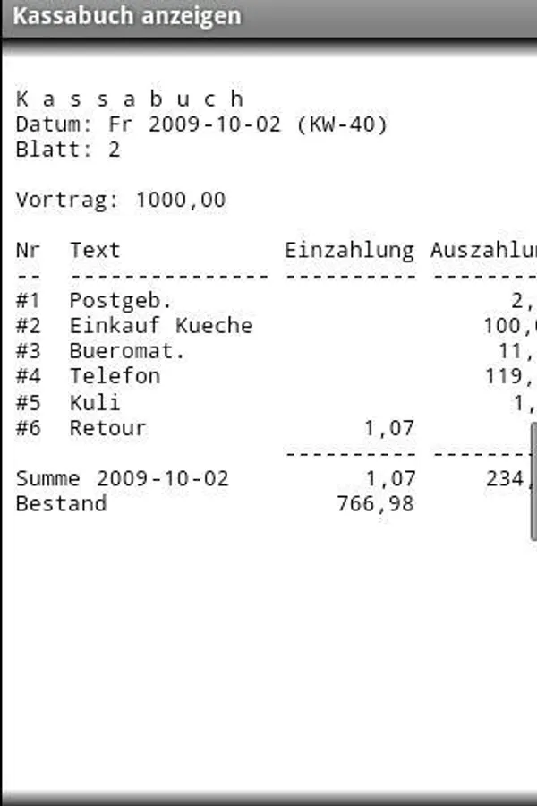 The analysis takes a sheet of paper per day, daily totals and the new stock.