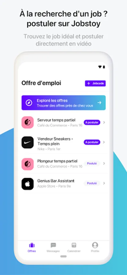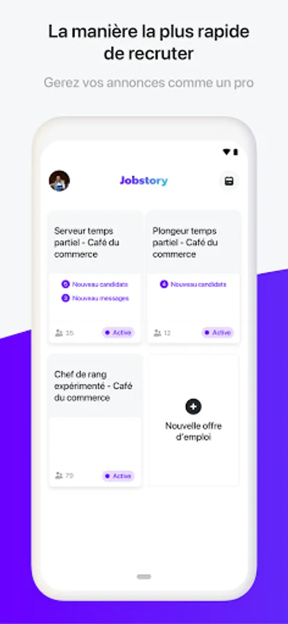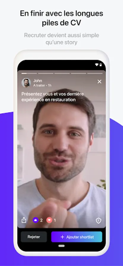 Jobstory is the 1st application 100% dedicated to video recruitments. Recruiters can post their job offers by adding 5 questions of their choice for candidates. Candidates consult the offers and apply at any time by answering the 5 questions while filming themselves with their phone. The recruiter receives and views the applications in the form of stories and can thus select and contact the candidates of their choice. The candidates thus benefit from 5 minutes to convince the recruiter, without undergoing any form of discrimination related to an address, a name, a date of birth etc… The recruiter manages all of his recruitments in the application in a minimum of time .