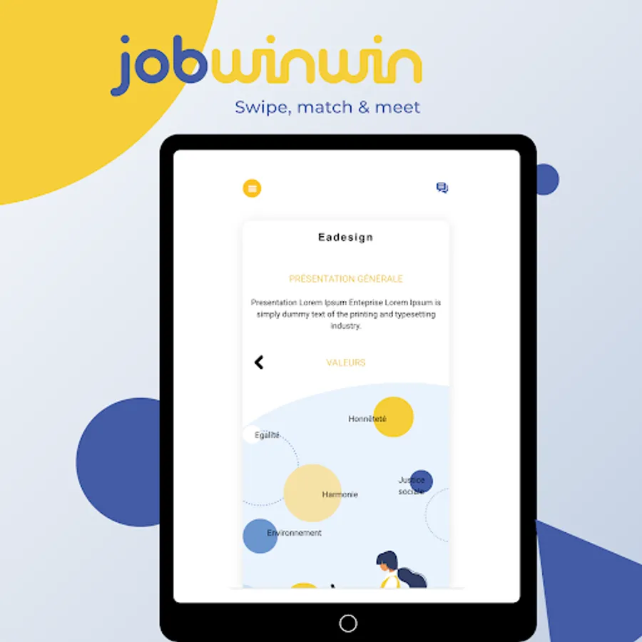Jobwinwin is the application for quickly, simply and efficiently matching candidates and recruiters. Because a match is not only a match rate, but a "mutual like" between candidate and recruiter. Because the working relationship is above all a win-win relationship, our application has been designed to promote the best encounters and increase the chances of quickly finding the talent you need or the right job.
