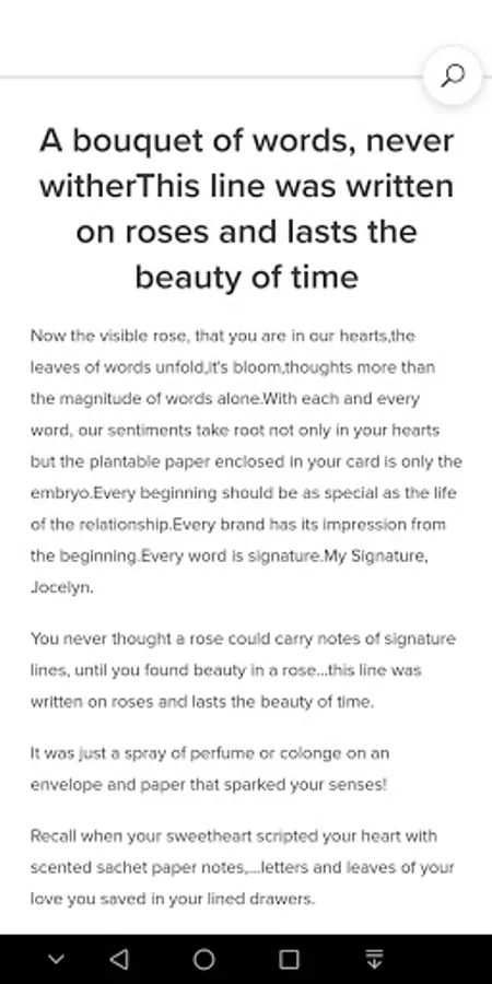 Now the visible rose, that you are in our hearts, the leaves of words unfold its bloom, thoughts more than the magnitude of words alone. With each and every word, our sentiments take root not only in your hearts but the plantable paper enclosed in your card is only the embryo. Every beginning should be as special as the life of the relationship. Every brand has its impression from the beginning. Every word is significant. My Signature, Jocelyn.