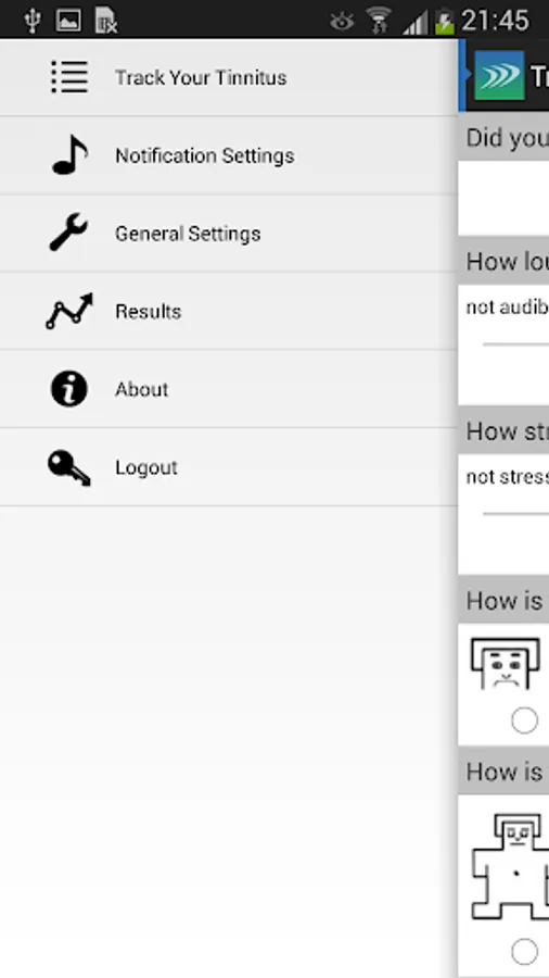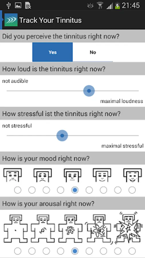 If you have questions, feedback or suggestions please don't hesitate to contact us under info@trackyourtinnitus.org.