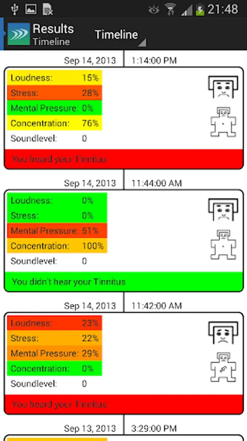 Even in the chronic case, the perception of the tinnitus can vary during the day and between days being sometimes more and sometimes less perceivable. The variation can depend on many factors including environmental noise, the daily activity, stressful life events, time of the day and much more. Many people have a good feeling of their tinnitus variation and can reconstruct it from memory to some extent - but how was the timeline of the variation exactly? Until recently it was not possible to systematically track the tinnitus perception over several weeks.