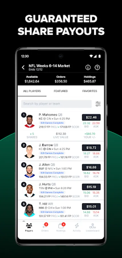 Cash Markets: Watch live as prices update in real-time while the games are happening! Bid for players before the games, and buy and sell based on in-game performance. After the final whistle, Jock MKT pays out each player share based on overall fantasy rankings, with top-scoring players earning the highest payouts.