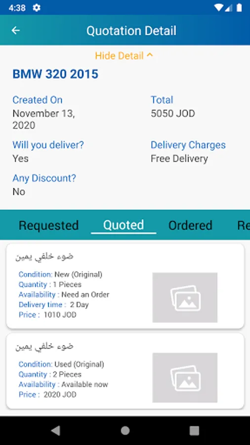 JoClaims is the first online bidding system for vehicles’ spare parts in MENA, our vision is to become the most reliable network that aims to connect vehicle spare parts' suppliers with insurance companies, vehicle owners and repair workshops through JoClaims network to provide the followings: