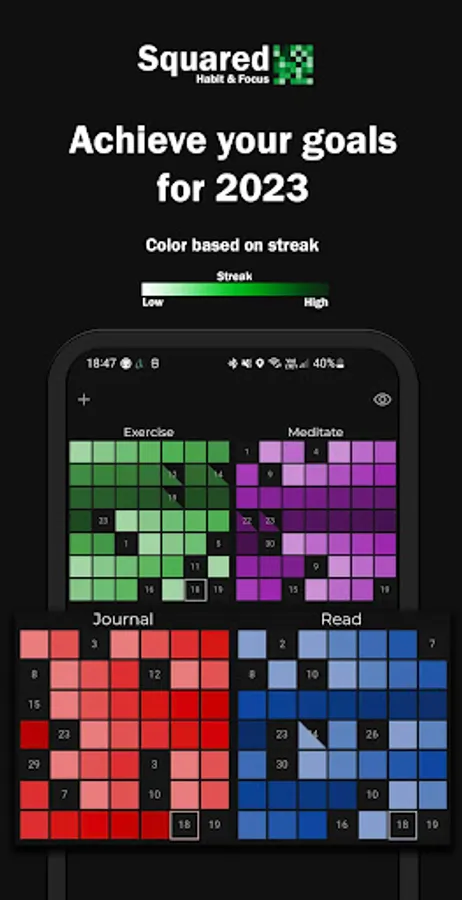 Squared is a habit tracking app that uses a 49 days format to make it as visually appealing as possible when viewing the progress of your habits.