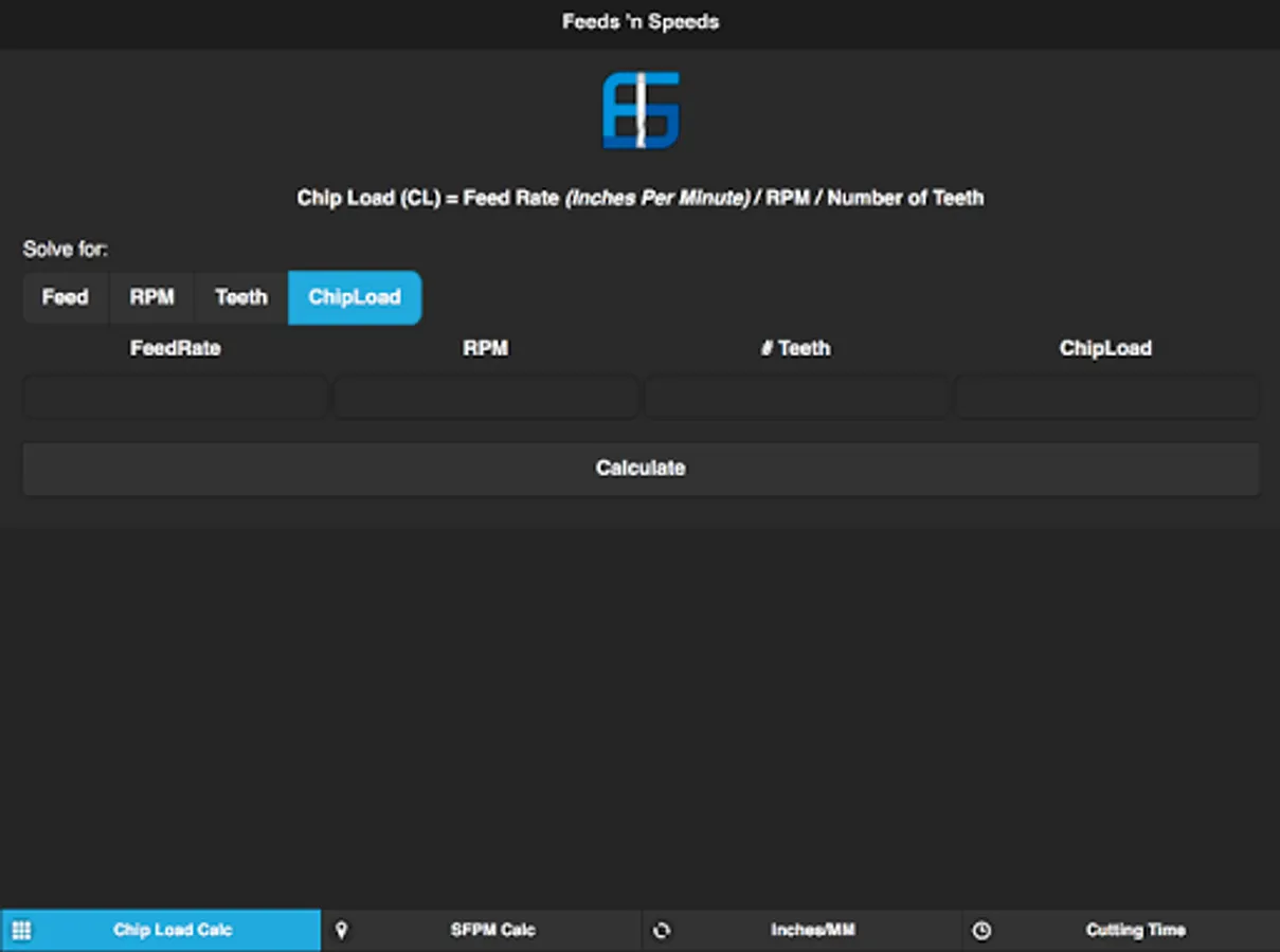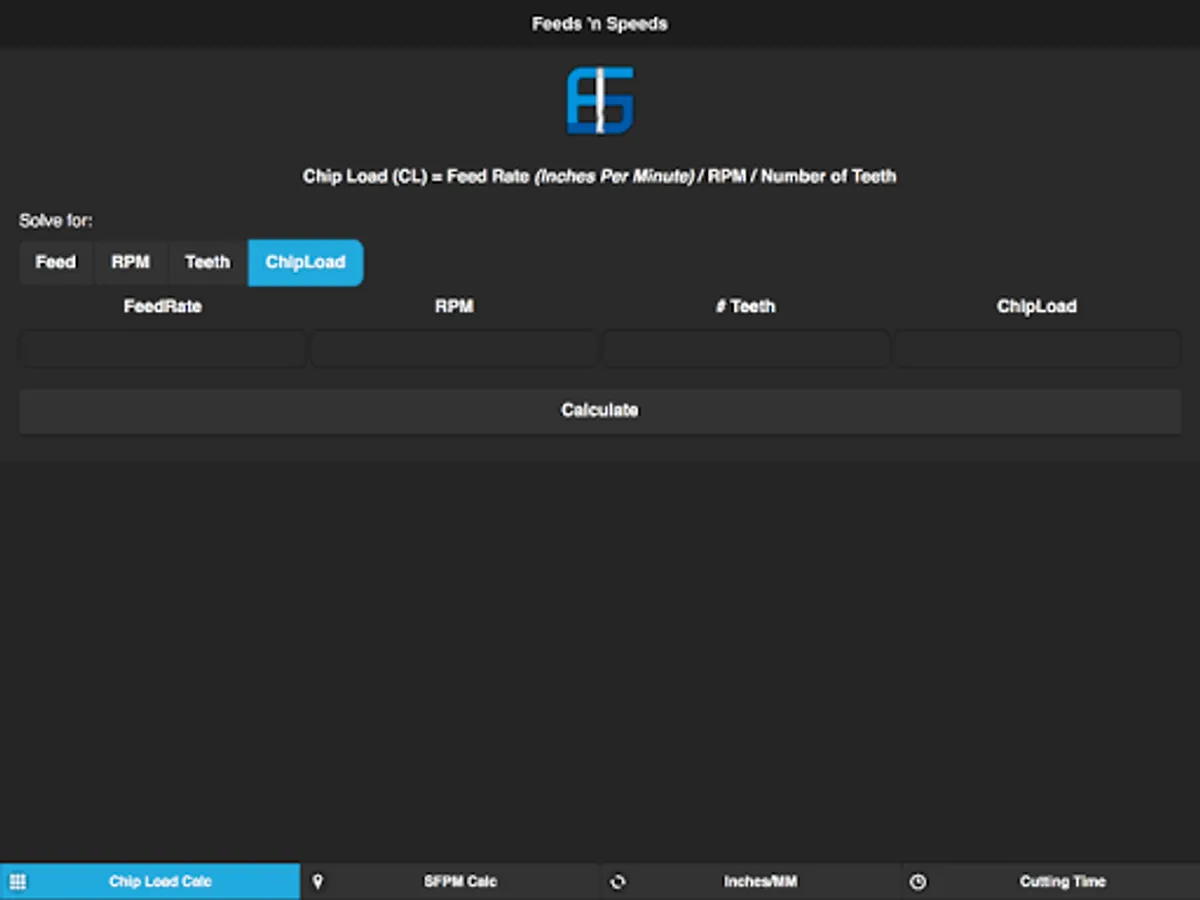 A set of useful tools for the CNCer. Includes a Chip Load/FeedRate Calculator, a Time Calculator and an Inches to Millimeters convertor.