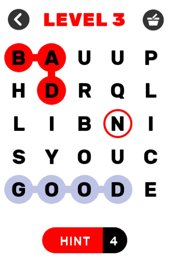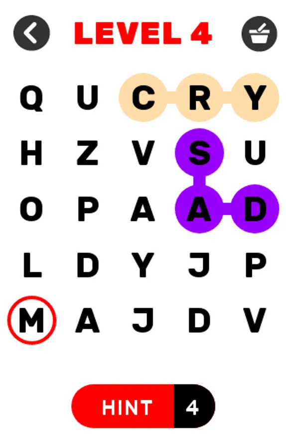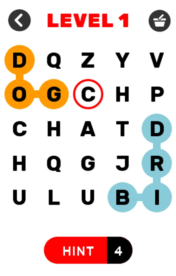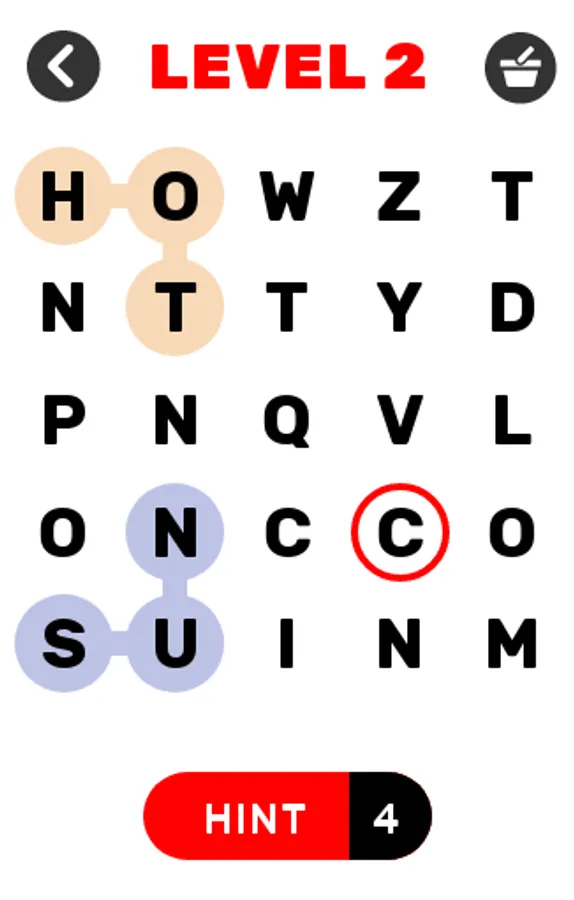 The Word Search game Gets Harder as You Progress Through the Word Search Game. The Word Find Game Starts With a Easy 5×5 Word Search Grid Up to a Really Challenging 8×8 Word Find game.