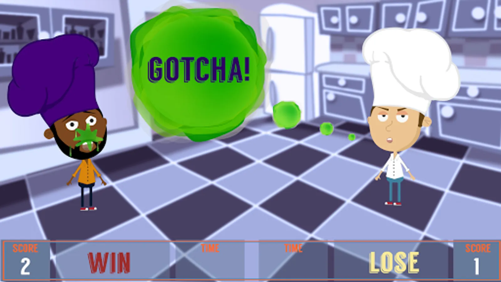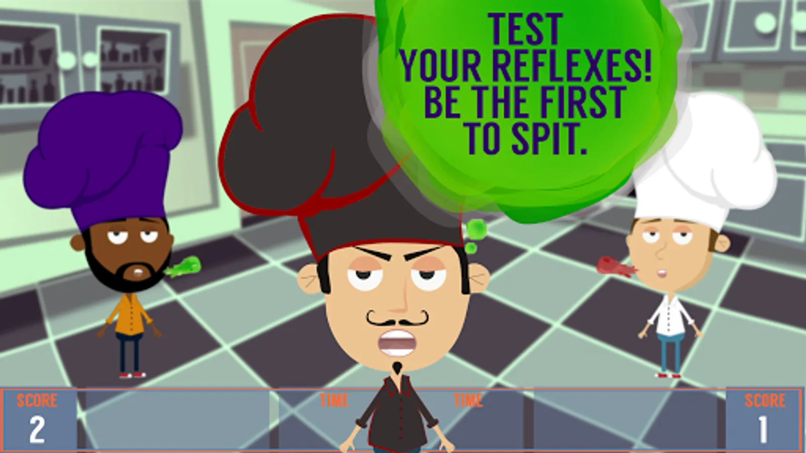 There’s a countdown. Once it’s over and you hear or see the spit signal, quickly PRESS your CHEF and RELEASE the SPIT. It’s the same for both single player and multiplayer, so it’s dead easy. Or should I say… spit simple? Manage to be the first one to spit on the opponent 3 times and you win the game! And remember...be QUICK or get a SPIT!