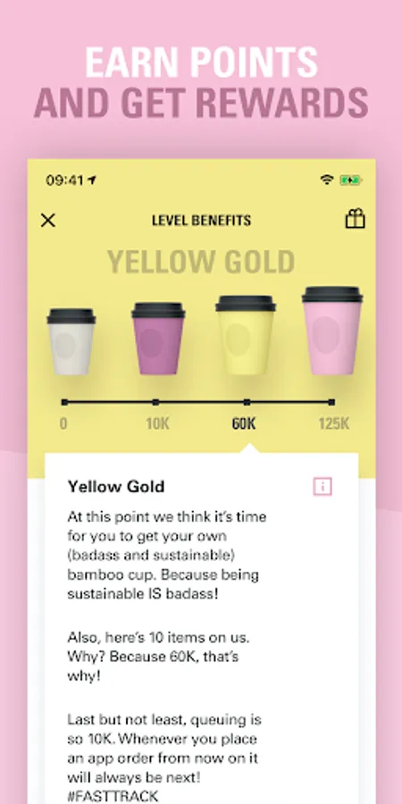 - Accomplish new tier levels to receive rewards and benefits such as free juice & coffee, fast-track ordering, family cards, and exclusive Joe & The Juice merchandise