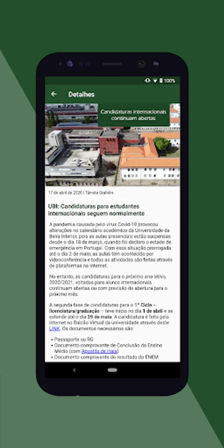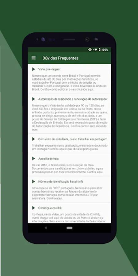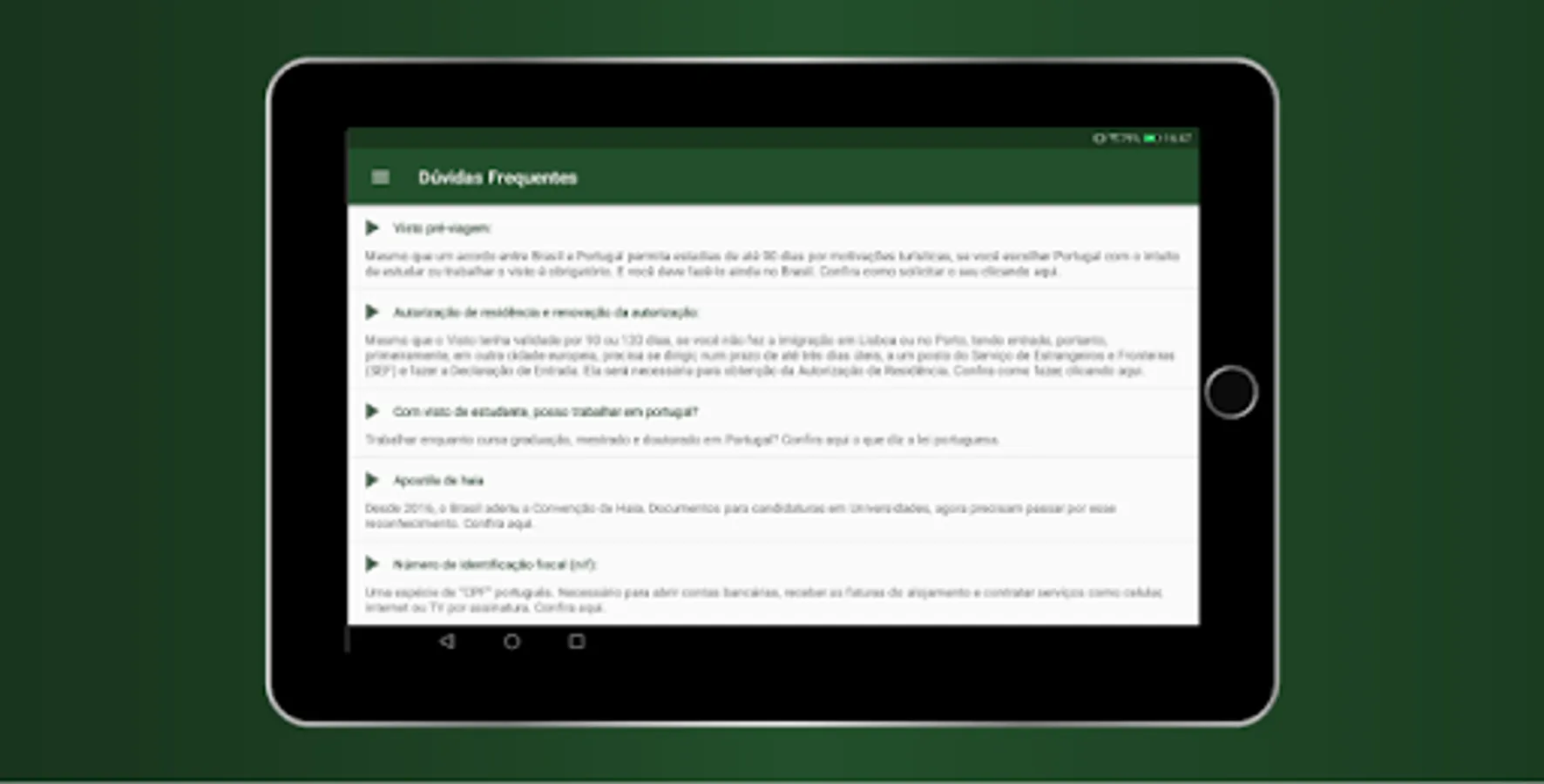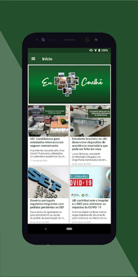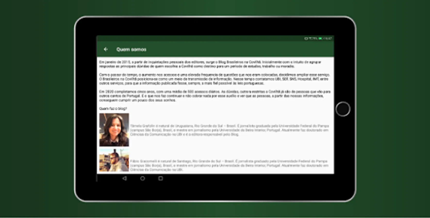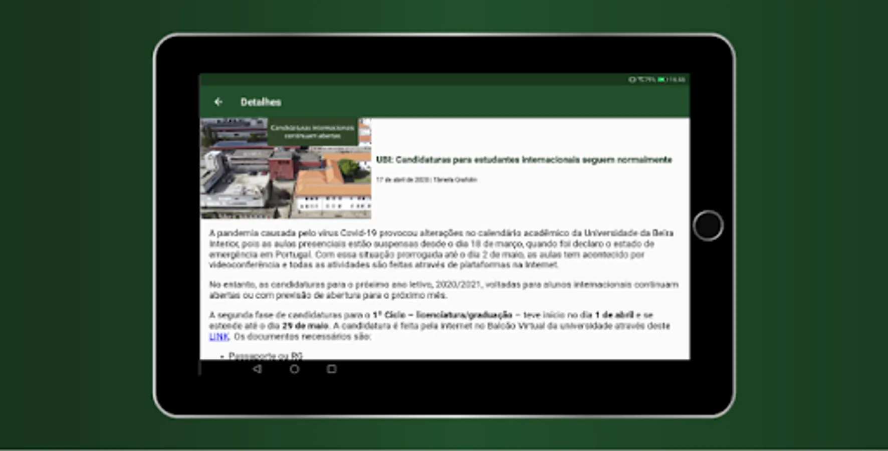 The application aggregates all the articles of the blog, in order to group answers to the main doubts of those who chose Covilhã as a destination for a period of study, work or housing. It is positioned as a means of transmitting information.