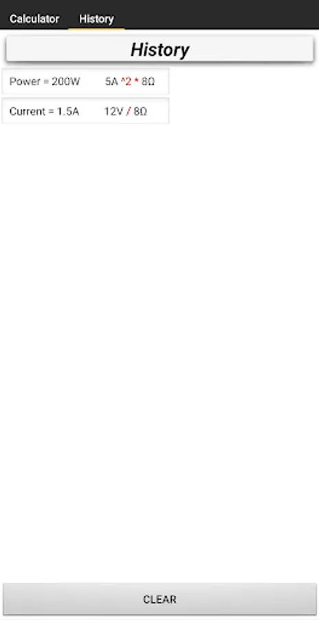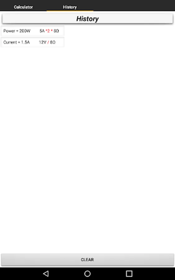 What were the results of that power calculation I did just a minute ago? Don't worry. Just swipe over to the next screen and you will find it listed under history.