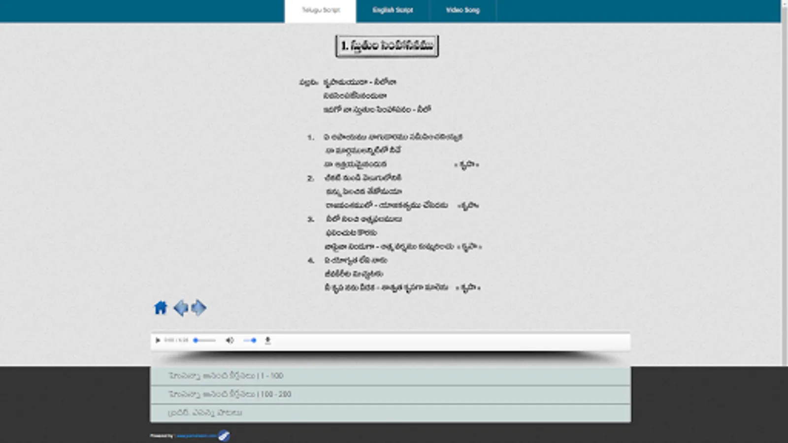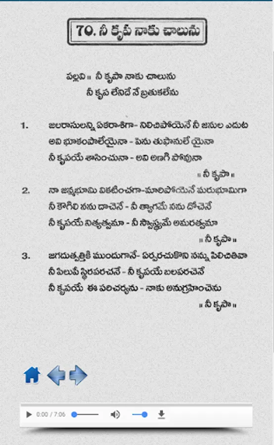 Hosanna Anandha Keerthanalu Complete Song Book in Telugu, English Script, its works on all android phones and tabs. 3g and 4g internet need, in this app you can listen songs and learn through script and teach to your kids,