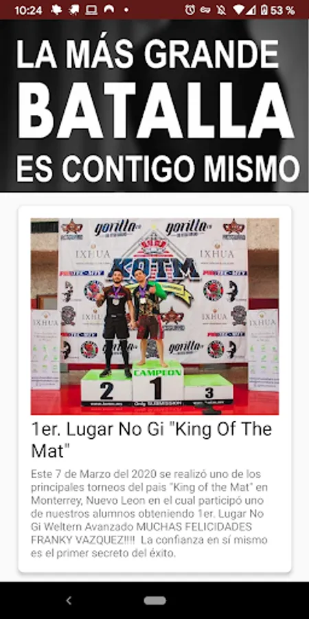 Application designed for interaction with members of the sports community "Grajeda Martial Arts & Fitness". In order to have a closer relationship with our students, as well as provide relevant data such as news, hours, notifications, etc.