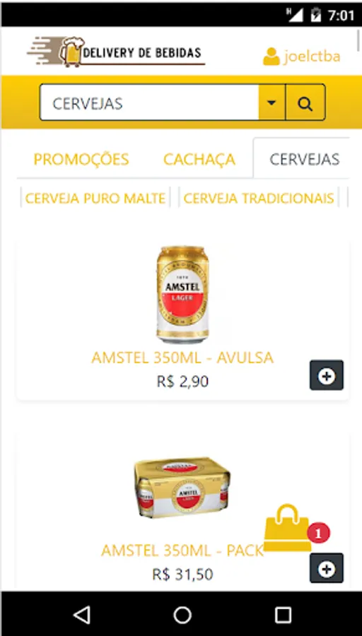 1. Choose the product, among beers, wines, spirits, soft drinks, among others;
