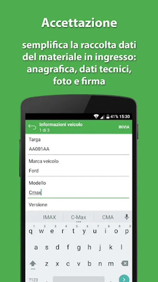 Acceptance becomes smart, compiles data on the customer and the material, conveniently from your smartphone, attach photos and send it to the management online.