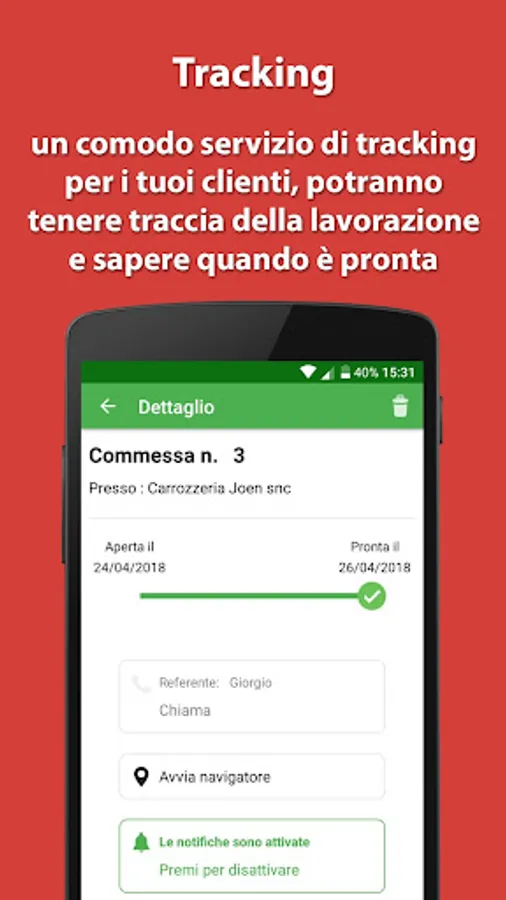 Tracking service, you show at any time to what extent is the repair and notifies the end of the meeting, directly on the customer's smartphone.