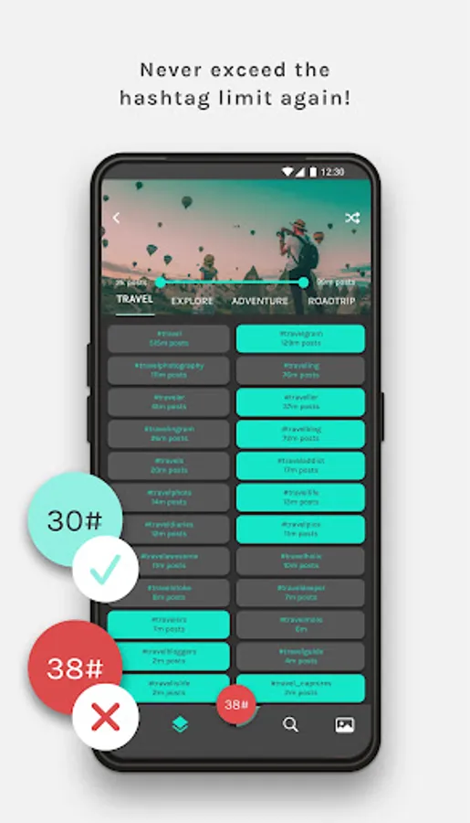 Tag Me is dedicated to increasing your Instagram productivity through captions and hashtags for likes. The maximum of allowed hashtags per Instagram post is 30 and Tag Me will indicate if you selected more than that.