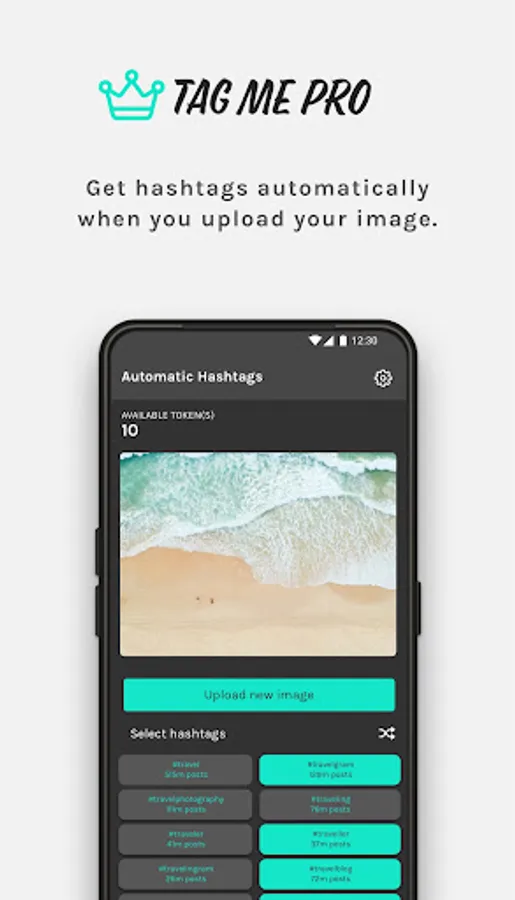 📸Upload picture and Tag Me will suggest hashtags for your picture