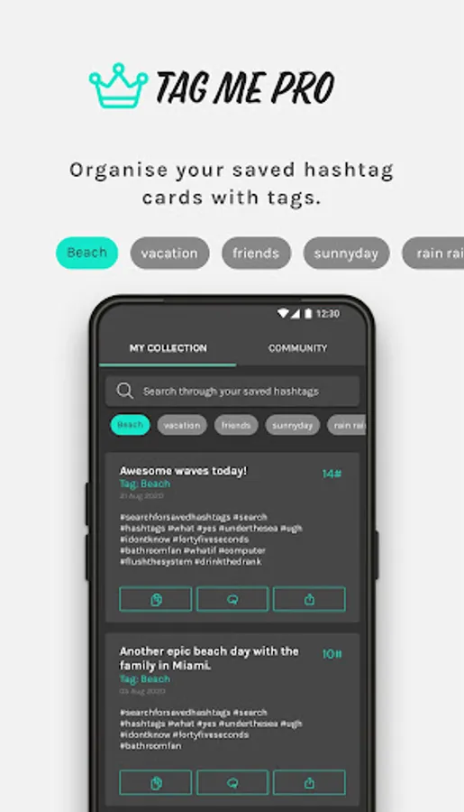 Our new community feature allows you to connect with friends and see their saved hashtag collections. Copy, save and share!