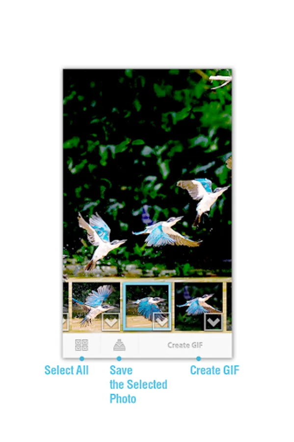 ✔ Able to take consecutive photo shots, and create and share GIF file (moving photos)