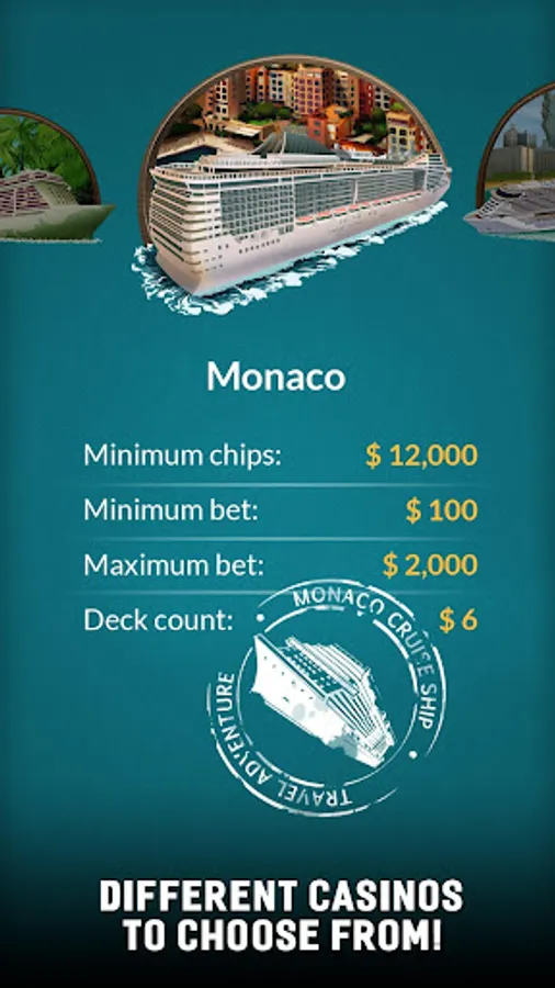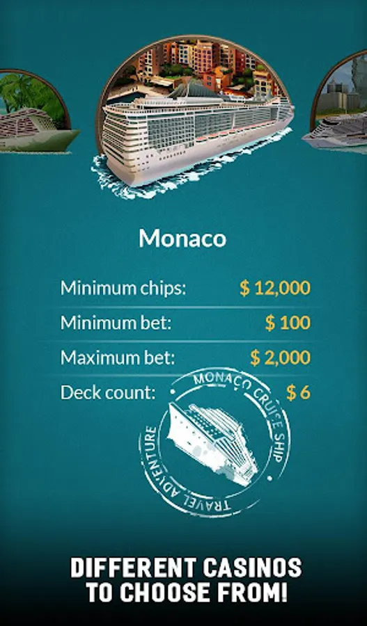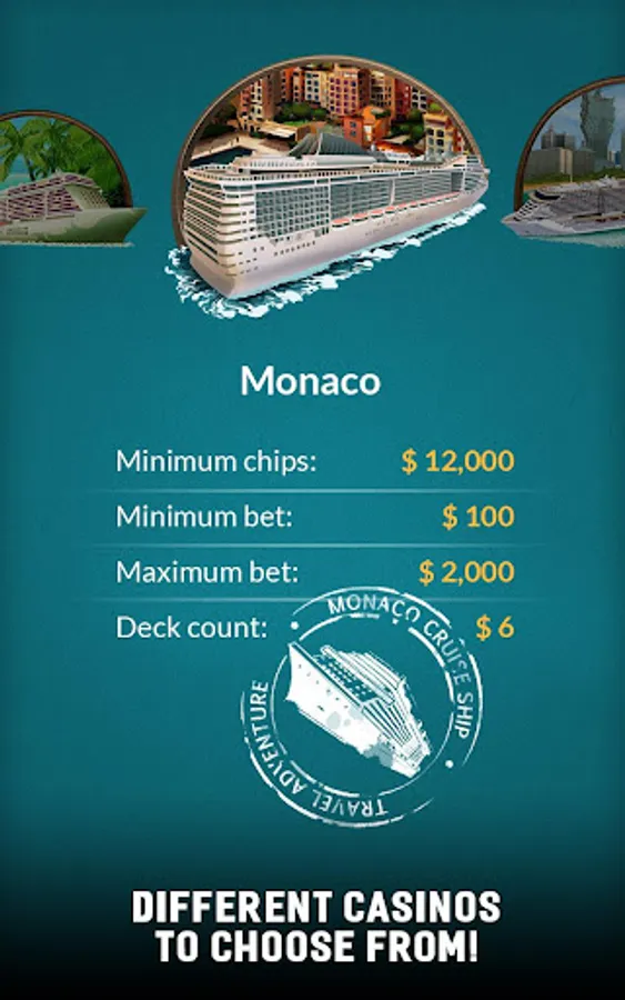 Travel around the world, visit glamorous casinos, and win tons of chips! Check out our main features.