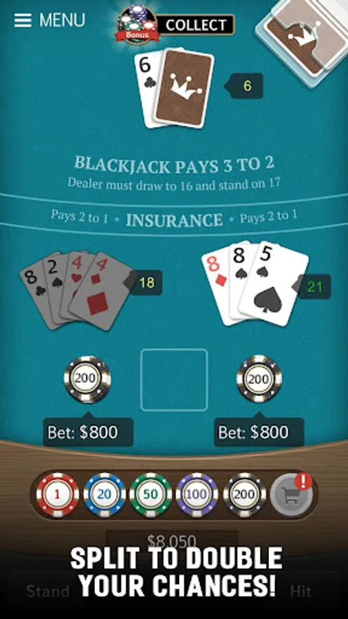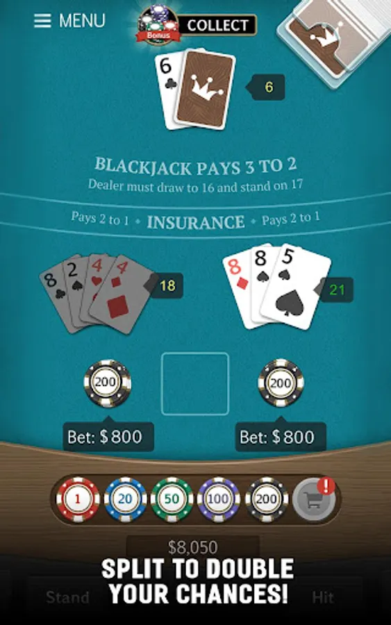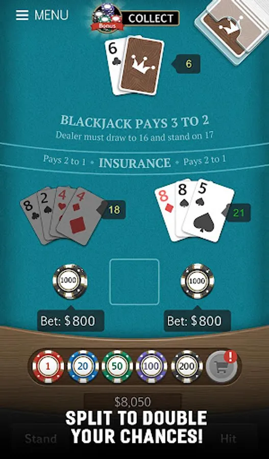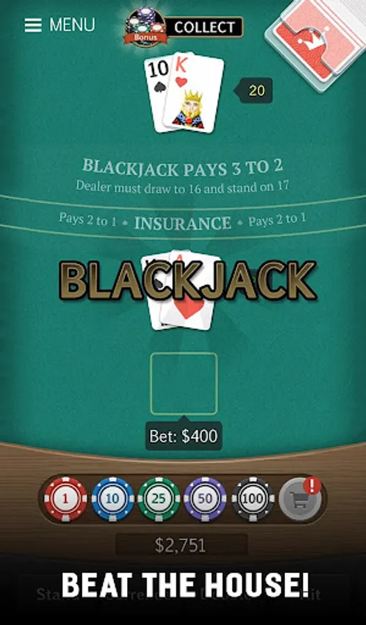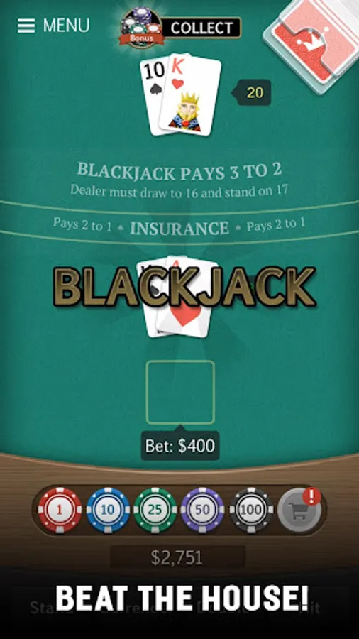 Also known as Black Jack and 21 (twenty one), Blackjack is one of the most classic and traditional casino and gamble games in the world. In Blackjack 21 Jogatina, you play 21 for FREE against the dealer with real Vegas odds! Keep an eye out for the dealer: you have to score closer to 21 than he does, but be careful not to go over 21! Make your bet and choose wisely if you want to hit, double or stand!