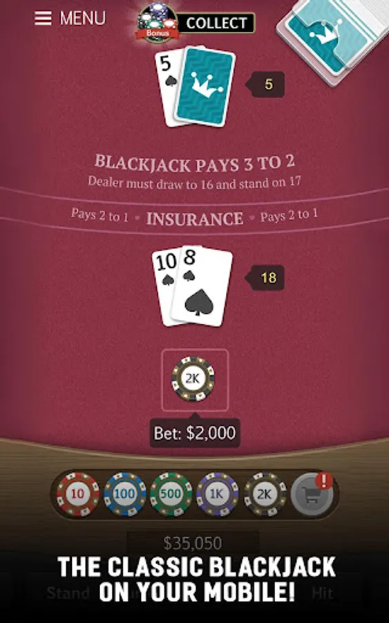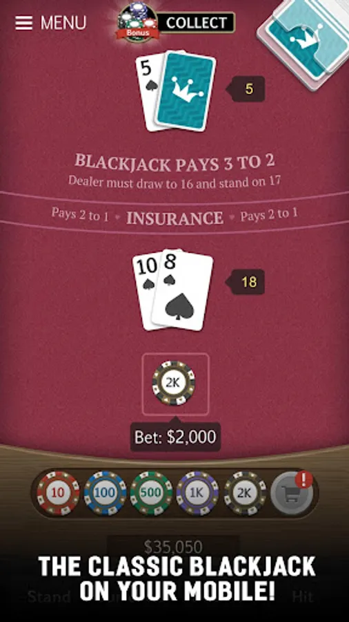 It doesn't matter if you call it BlackJack, Black Jack 21, or just 21 (twenty one), if you like this game or other card games with bets like poker or even gambling games like slot machines, bingo, and roulette, you will love Blackjack 21 Jogatina! Download it now for free and win tons of chips by scoring as many Blackjacks as you can!