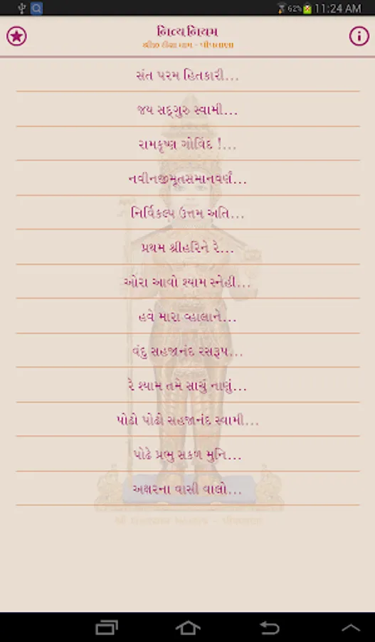 We have collected all Daily "Nitya Niyam" with reading in Gujarati language and listening all in MP3s. All tracks in this application play automatically and do not require manual input to move to next track or previous track. It also works in offline mode which will save your internet usage and can work if you are in no mobile coverage area.