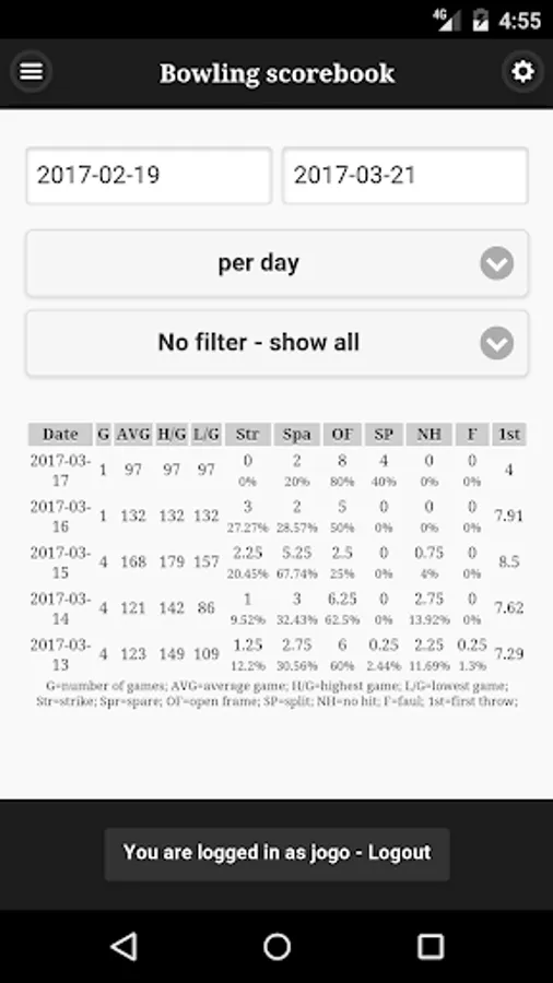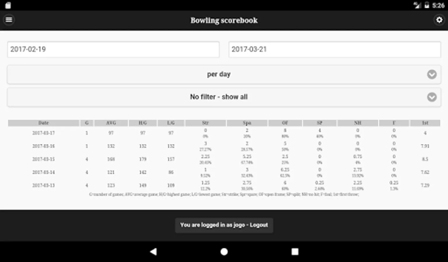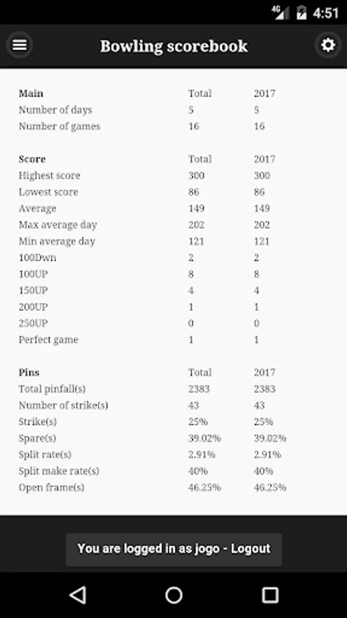 I like to play bowling with my friend regularly and bowling is my hobby. I need an app to record down the score and make detailed statistics from them. So, I decide to write this app. I hope, that my application will help several players. And if you will find any issue, fee free to contact me as if you are missing some functionality, some detail, some statistic...