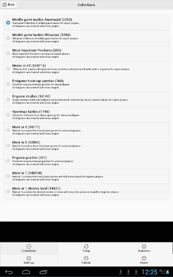♜ Collections contain Mate in 1, Mate in 2, Mate in 3, Endgames puzzles, Tactics puzzles, Openings puzzles, Studies and chess problems