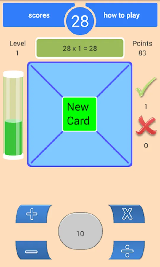 With only the four basic operations you are challenged to solve cards increasingly faster and with higher numbers.