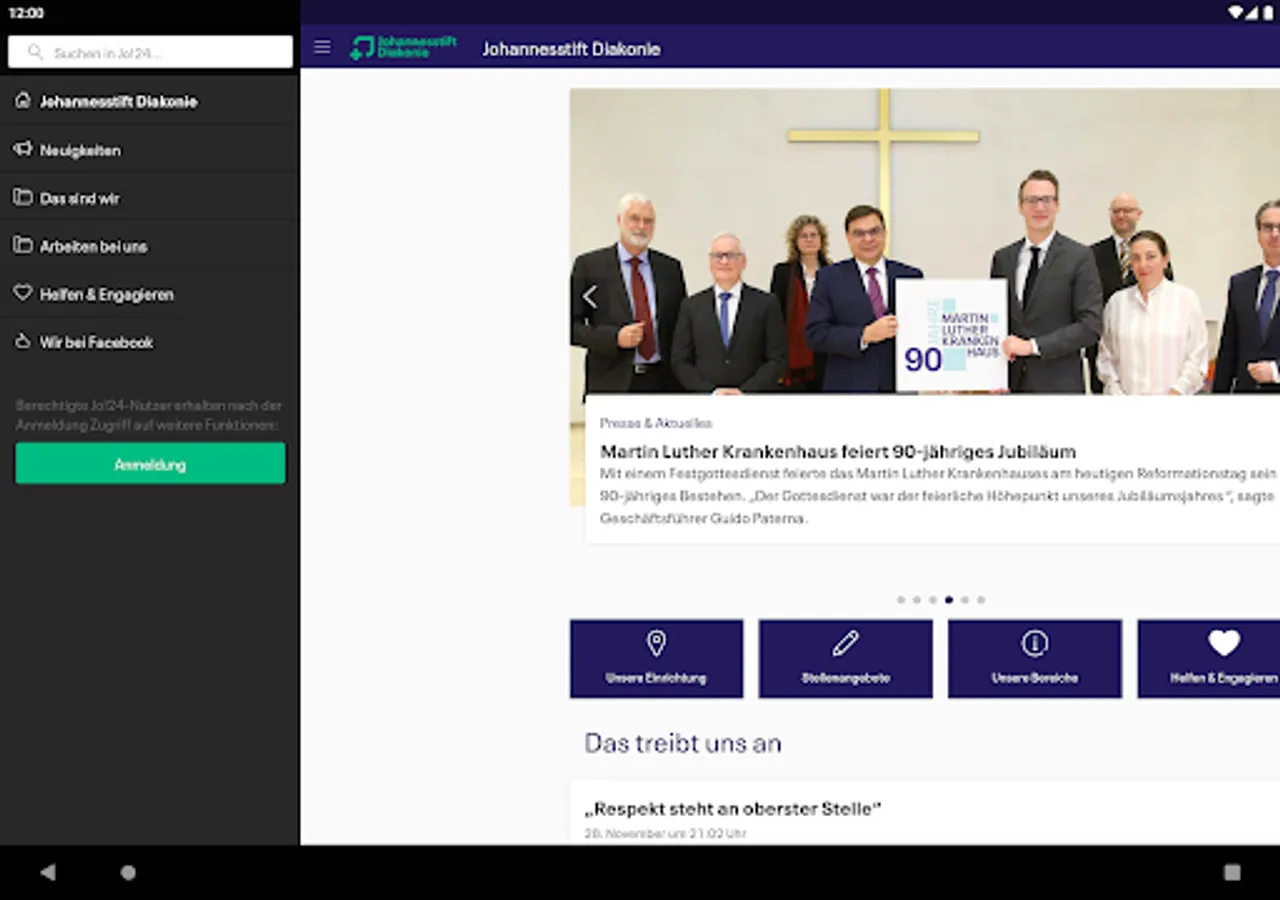 JO!24 is the central communication app of the Johannesstift Diakonie.