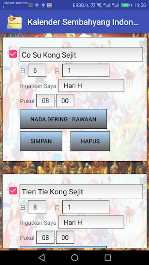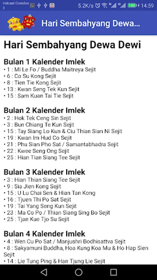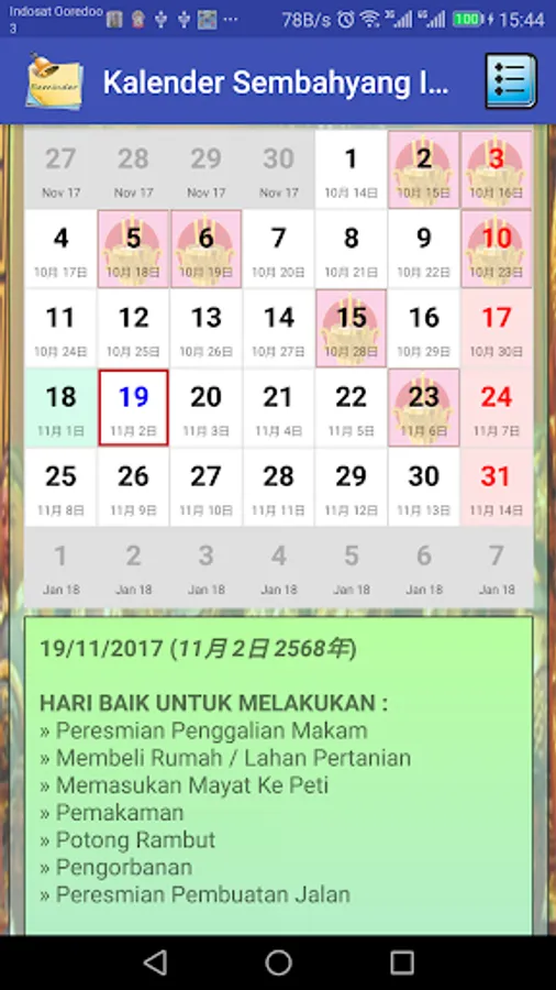 Calendar Information about prayer times Birthday / Sejit / Commemoration of Gods, Goddess, Buddha, Tridharma & Confucianism.