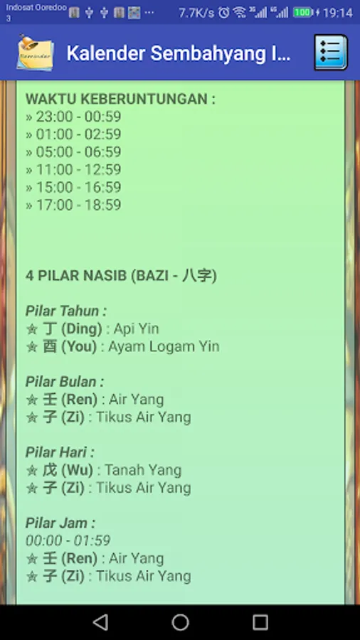 Information Regarding the 4 Pillars of Fate (Heavenly Pillars and Earth Pillars) or commonly known as BaZi (八字), this information will be displayed on each selected date.