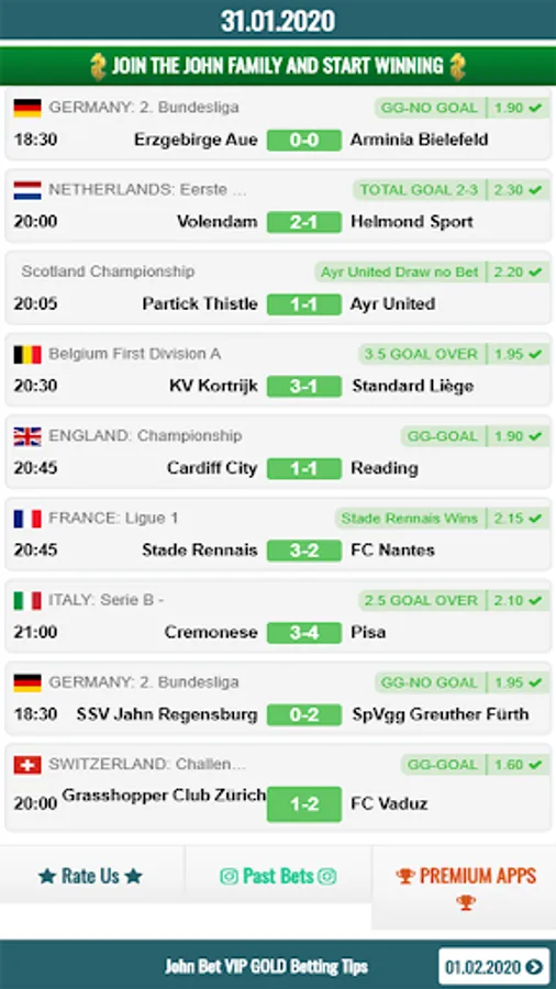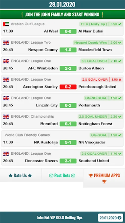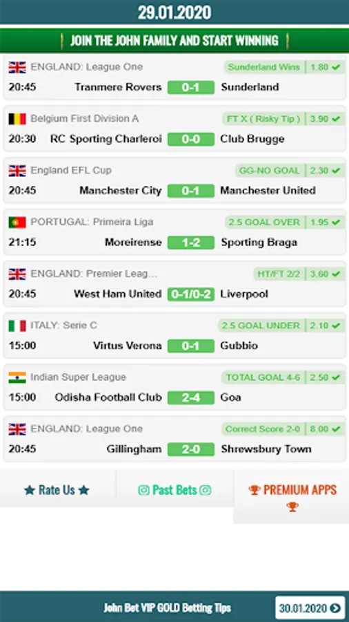 If you wish to have high odds, you can purchase one time our John VIP GOLD application and use it life time. John VIP GOLD application provides sure betting tips and wins always.