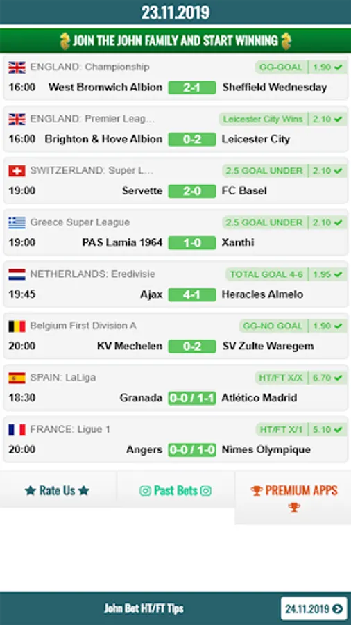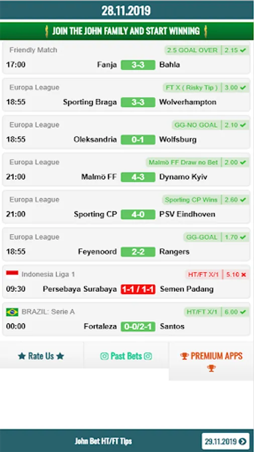 In our John VIP HT/FT applications, there are only football betting tips. We are analysis 40 leagues in the world and provide you tips. We are providing special high odds tips every day of year. We win a lot and we want you win too.