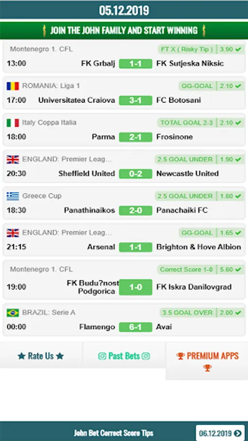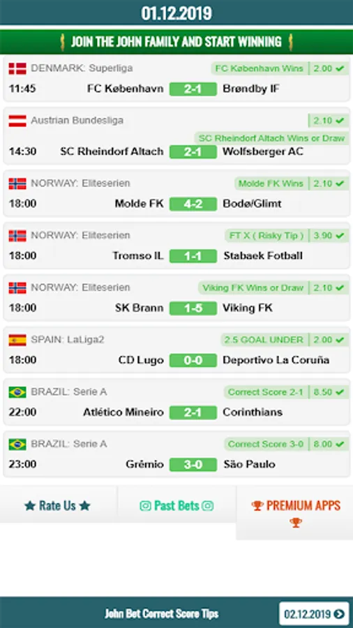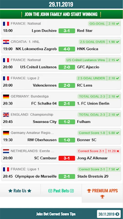 In our John VIP Correct Score applications, there are only football betting tips. We are analysis 40 leagues in the world and provide you tips. We are providing special high odds tips every day of year. We win a lot and we want you win too.