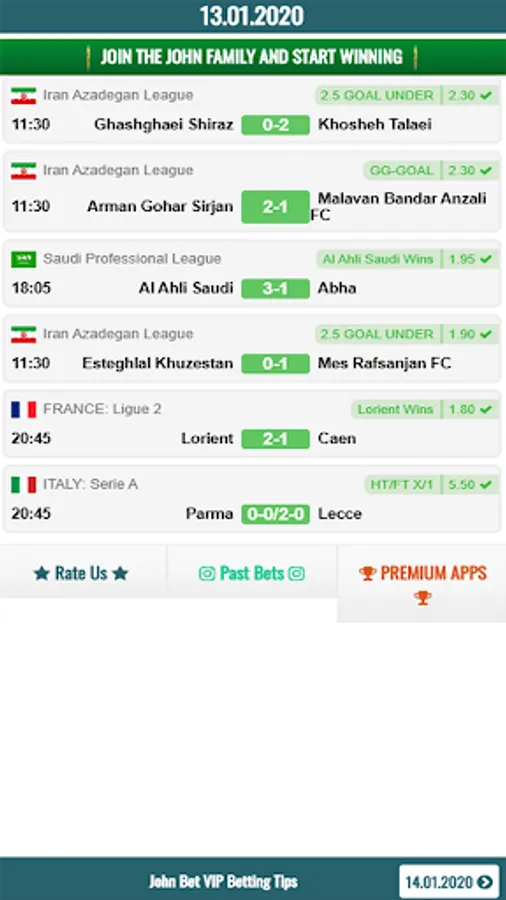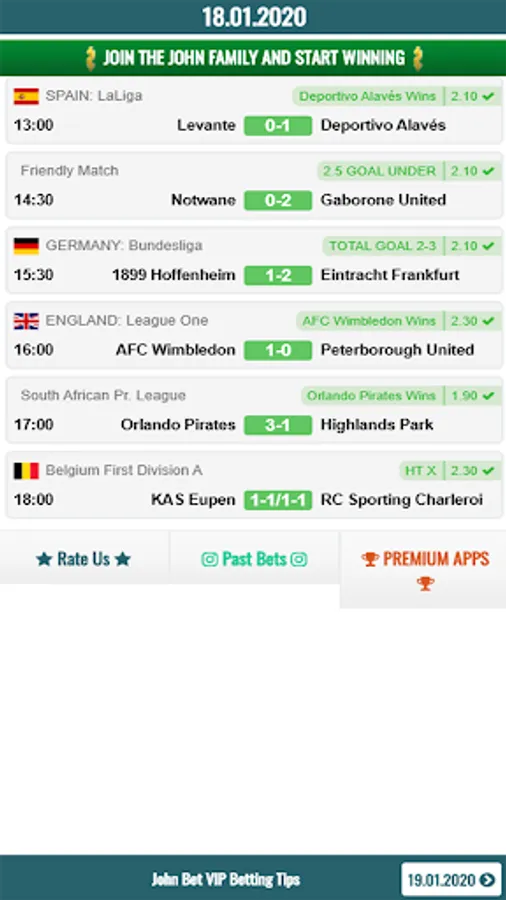 If you wish to have high odds, you can purchase one time our John VIP Betting Tips application and use it life time. John VIP Betting Tips application provides sure betting tips and wins always.
