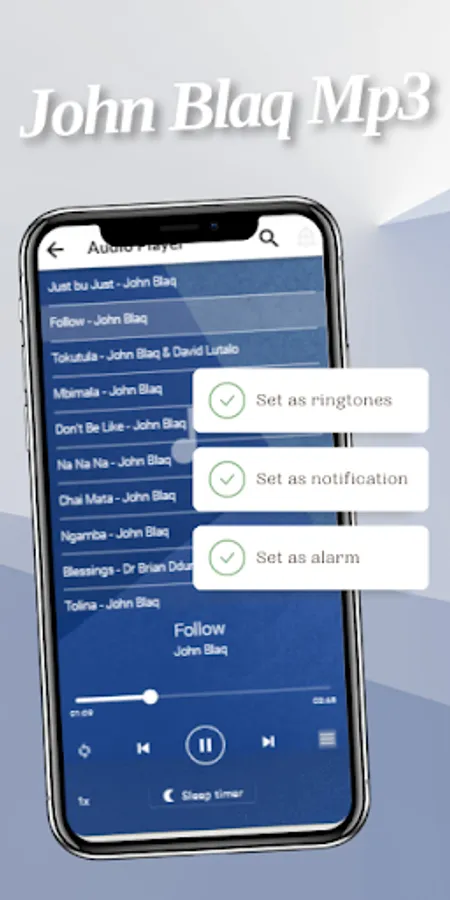 John Blaq Songs This application presents you with popular songs, an application that contains old and new songs that you can enjoy. If you are a fan of songs, this application is made for you. Download the application now for free, and enjoy and listen to the most beautiful songs without internet, with high quality and easy to use.