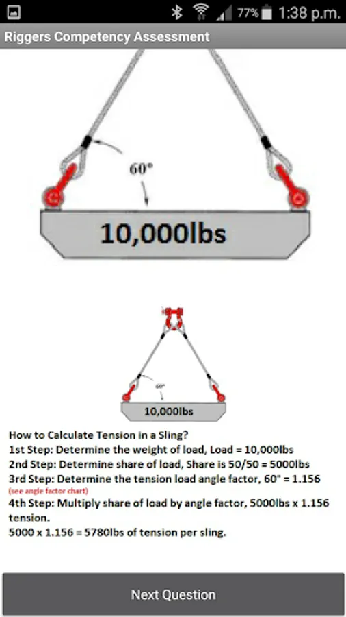 The complexity of the questions vary from general lifting equipment use, inspection and lifting operations as well as lifting equipment regulations.