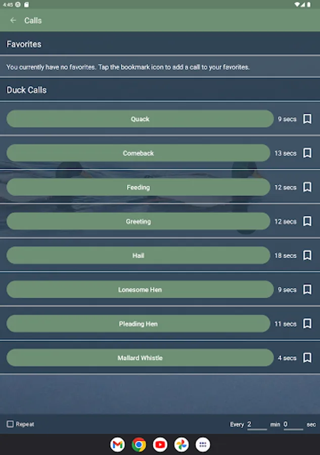 This is the ad free version of this app: https://play.google.com/store/apps/details?id=com.johneyboy.duckcalls