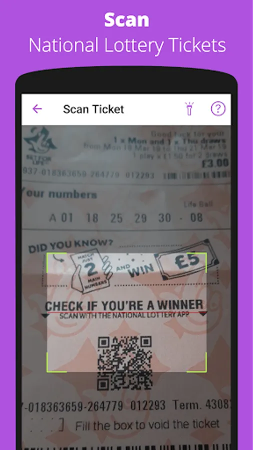 Simply scan your Lotto, EuroMillions, Thunderball, Set For Life and HotPicks tickets to find out instantly if you’ve won a prize. Lotto Lens will tell you how many numbers you matched and how much money you’ve won. It also checks those pesky Raffle numbers for you.